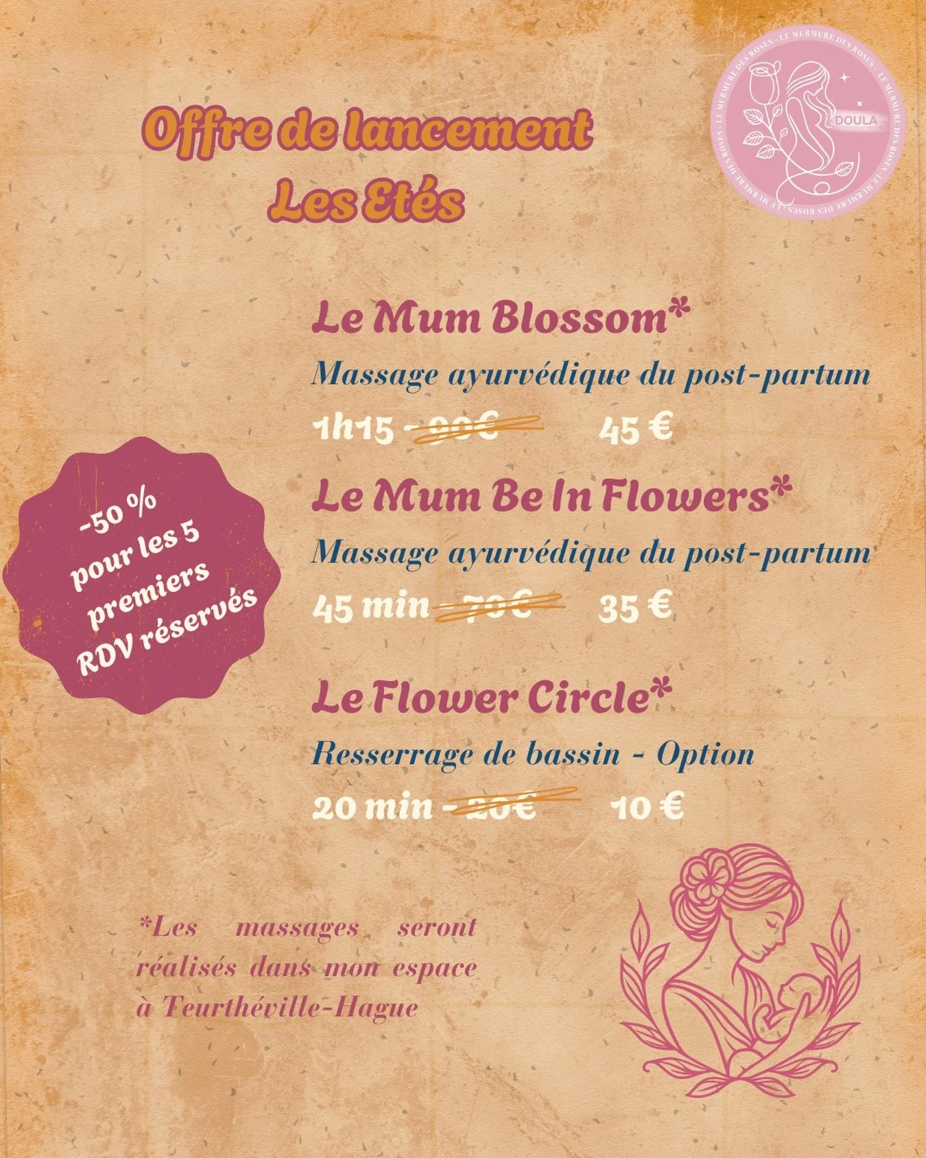 Vous offrir un temps de bien-être pour ce corps qui porte ou qui a porté la vie. Laissez-vous emporter par cette bulle de douceur que je vous propose.
